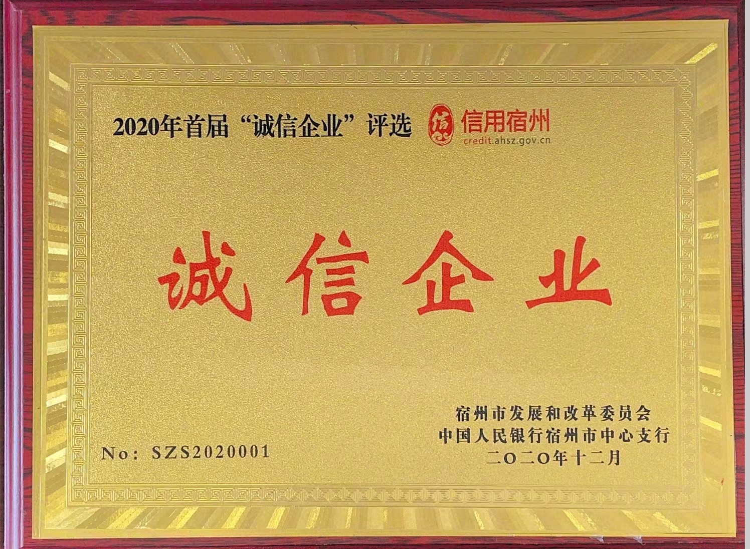 2022年6月21日,在宿州市信用協(xié)會工作推進(jìn)會上,我司受邀參加“誠信企業(yè)”獎(jiǎng)牌頒發(fā)儀式,獲得“宿州市誠信企業(yè)”榮譽(yù)。